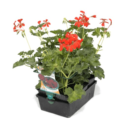 Géranium LIERRE SIMPLE ROI DES BALCONS Impérial rouge vif : 6 plants en godet de 7 cm. Plant vendu par 6, prix pour 1 plant de Géranium LIERRE SIMPLE ROI DES BALCONS Impérial rouge vif.